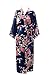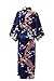 J.ROBE Women's Kimono Robe Long Printed Lotus Kimono Robe Silk With Pockets Navy