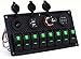 DCFlat 4 Gang / 6 Gang / 8 Gang Circuit LED Car Marine Waterproof 5 Pin Boat Rocker Switch Panel with Fuse Dual USB Slot LED Light + Power Socket Breaker Voltmeter for RV Car Boat (8 Gang-Green)