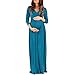- Wrap maternity maxi dress with ¾ sleeve made of soft, stretchy, yet durable material designed for comfort through all stages of pregnancy.