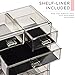 <b> Tired of rummaging through dresser drawers, purses, and bags to find your favorite go-to items? </b><br><br> Find beauty in organization with the Sorbus® Acrylic Cosmetic Makeup and Jewelry Storage Case. It features acrylic construction to store your makeup and jewelry with an effortless view. Four drawers on the bottom unit are ideal for oversize cosmetics, toiletries, and grooming tools, while the top two drawers hold smaller items. It also includes 16 slots on the top portion to keep items such as brushes, lipsticks, eye pencils, and perfume bottles protected, upright, and in place. Drawers are perfect for storing palettes, foundations, bronzers, blushes, primers, powders, jewelry, accessories, keepsakes, and much more! <br><br> <b> Turn your collection into a functional and stylish display with an acrylic storage case, perfect for home or professional use. </b><br><br> Add a chic display to your dresser or countertop while bringing ease and convenience to your everyday routine. For convenience, you'll always see your products right when you need them most. Turn your loose makeup into your very own beauty counter or use this case as a jewelry box to complete your look from head to toe! This storage case can be stored in bathrooms, closets, vanity counters, dressers, and most tabletops. <br><br> <b> The clear acrylic construction helps you find your items instantly, saving you valuable time during a busy morning rush. </b><br><br> Made of acrylic which is a clear plastic that resembles glass but much stronger and safer. It includes 4 large drawers, 2 small drawers, and 16 slots. Drawers slide open smoothly and handles are easy to grip. Makes the perfect gift for any makeup lover, from beginner to guru! Makeup NOT included. Measures approximately 9.25 " L x 6.25" W x 14.25" H<br><br><b> Ditch clutter, not your shopping obsession! Add storage for all your beauty and fashion essentials. </b><br><br>