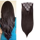 10-24inch Clip in Remy Human Hair Extensions Grade 7A Thick to End Full Head Natural Hair Long Straight 8 Pieces 18clips 70g 10"-12''#2 Dark Brown