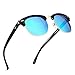 SUNGAIT 80s Sunglasses Retro Semi Rimless for Men Women (Black Frame (Glossy Finish)/Blue Mirror Lens) 3016 HKLA