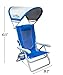 The GCI Waterside Reclining Portable Backpack Beach Chair with SunShade is ideal for beach trips, water sports, picnics, festivals, tailgates and sporting events, with its easy-carry backpack straps and built-in canopy for sun protection. With a 4-position reclining backrest, armrests, and a head pillow, it provides comfort and support for hours. The UPF-50 sun shade adjusts from front to back and collapses when not in use. When the temperature rises, mesh paneling ensures airflow for ventilated seating that stays cool, and a built-in beverage holder keeps cold drinks at the ready. A large storage pocket is attached to the back of the chair so that all outdoor essentials can be transported without the need for an extra bag or backpack, leaving hands free for coolers, kids, and beach toys. Seat height is 11 inches, and the sturdy powder-coated aluminum/steel hybrid frame supports up to 250 pounds. The GCI Waterside Reclining Portable Backpack Beach Chair with SunShade measures 44.7 x 24.2 x 43.5 inches, collapses to 4.3 x 24.2 x 28.1 inches, and weighs 10.2 pounds. Manufacturer's one-year limited warranty.