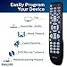 Settle in for the night with the Philips 6 device universal remote. You’ll no longer need to worry about keeping track of multiple controllers – the remote is designed to control 6 separate devices, including your TV, video streaming media Player, Blu-ray player, cable, satellite and more. Eliminate the hassle of programming more than one controller and enjoy the simple, user friendly setup of the universal remote. Enhance and simplify your home entertainment system by customizing the remote’s capabilities to give you the best experience possible. The universal remote also features primary audio control, allowing you to raise or lower the volume regardless of which device you’re operating. For added convenience, The remote includes a DVD/Blu-ray player open/close button as well as advanced DVR functions, simple menu navigation, a dash button for sub-channel access and a one-touch streaming button to take you straight to media platforms on your devices. The remote comes in a glossed black finish with easy to see big buttons. It requires 2 AAA batteries (not included). make the Philips 6-device universal remote The center of your home entertainment system.