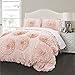 Lush Decor Serena Comforter Pink Blush Ruched Flower 2 Piece Set, Twin XL,