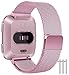 Vancle For Fitbit Versa Bands, Stainless Steel Milanese Mesh Loop Metal Replacement Wristbands with Magnet Lock for Fitbit Versa (06 Sakura Pink, Small)