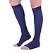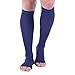 Doc Miller Premium Open Toe Compression Sleeve 1 Pair 20-30mmHg Strong Support Graduated Sock Pressure Sports Running Recovery Shin Splints Varicose Veins (Dark Blue, Open Toe, Large)