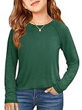 Haloumoning Girls Raglan Long Sleeve Shirts Kids Curve Hem Crewneck Tunic Tops Fashion T-Shirts 5-14Y Deep Green