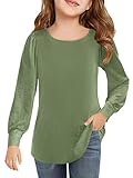 Haloumoning Girls Puff Long Sleeve Shirts Kids Casual Crewneck Soft Tunic Tops Blouse 5-14 Years Green