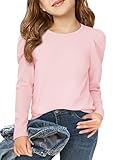 Haloumoning Girls Puff Long Sleeve T Shirts Casual Crewneck Loose Fit Tee Tops Kids Fall Clothes 5-14 Years Light Pink