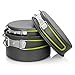 COMPACT & LIGHTWEIGHT: Portable stackable mess kit, the frying pan can be used as pan cover, folding handles with silicone tube cover for convenient carry and ease of storage. ONLY 1.6lbs (Longest dimension when stored is 6.75 inches), this set is perfect for any backpacking adventure. Note: Please do not put the handle of the pot on the fire directly, which may burn the handle.