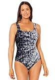 Swimsuits For All Women's Chlorine Resistant Square Neck One Piece Swimsuit - 16, Black White Sunburst (Plus