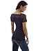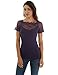 PattyBoutik Women Scalloped Lace Inset V Neck Top (Dark Purple 02 Large)