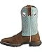 Durango sets this cowgirl boot apart with smooth leather saddle foot under a bright blue, fancy stitched 10" leather shaft. Rolled and tempered steel shanks. 1 1 /4" rocker heel. Double stitched welt. Easy-on pull straps. Modern wide square toe profile. Imported.