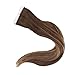 Full Shine 14" Remy Tape in Extensions Human Hair Balayage Ombre Color #4 Fading to #27 and #14 Highlighted With Color #4 2.5g/Pcs 50gram/Pack Balayage Tape in Remy Human Hair Extensions
