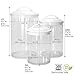 These clear acrylic (BPA free) canisters are great for so many different jobs. Use them to store food such as nuts, cookies and treats. Use them for your baking supplies, bathroom supplies, pet supplies and even craft supplies. Each lid has an air tight seal to keep your food fresh. Each lid is made of a durable plastic and has a handle to lift off the jar (please not try to lift the entire container by just the lid alone). this set includes one each of the following; 40oz, 28oz, and 72oz container which are all dishwasher safe. Enjoy the bright colored lids to add some Color to your rooms while organizing your everyday items. Set has 3 containers; 5 Cups, measures; 5â€d x 7¾â€h (with lid on), 8¾ cup measures; 5½â€d x 9½â€h (with lid on), & 3½ cup measures; 4¼â€d x 6¾â€h (with lid on).