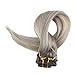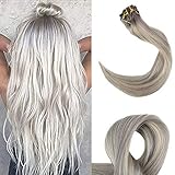 Full Shine 16" Human Hair Thick Clip In Ombre Hair Extensions Color #19A Ash Blonde Fading To Color #60 White Blonde 10Pcs Clip In Remy Hair