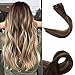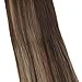 Full Shine 14 inch Remy Clip On Human Hair Brown Color #4 Fading to #27 and #14 Highlighted With Color #4 Clip In Hair Extensions 100 Gram