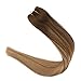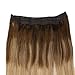Full Shine 20Inch Flip Extensions Invisible Fish Line Remy Human Hair Color #4 Fading to Color #10 Highlighted #4 and Color #16 No Glue Hairpiece 100 Gram Per Set