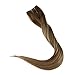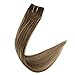 Full Shine Balayage Color #4 Fading to Color #24 Blonde and Color #4 Medium Brown 20 Inch Secret Fish Line Flip Extensions Remy Human Hair 100g Per Set Invisible Hairpiece