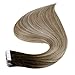 Full Shine Tape In Real Hair Extensions 18 Inch Color 3 Fading to 8 Highlighted 22 Blonde Balayage Seamless Tape In Extensions Human Hair 50 Grams Per Package Tape in Hair
