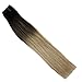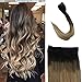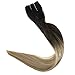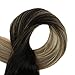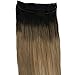 Full Shine 16 inch Invisible Fish Line Hair Extensions Color #1B Off Black Fading to #8 and #22 Flip Extensions Balayage Color Remy Hairpiece Width 11" 80g Per Set