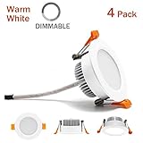 <b>BETTER LIGHTING COLORS:</b><br> CRI80+, provides near-sunlight quality light for true color rendering and consistency inside your home, show natural color more vibrantly.<br><br> <b>SAVE YOUR ELECTRICITY COST:</b><br> High lumens per watt, almost no power waste on heat output, much brighter and more energy-saving than traditional bulbs.<br><br> <b>WIDE APPLICATIONS:</b><br> Aluminum housing, excellent corrosion resistance and heat dissipation. The light would meet various needs in applications such as stores, shopping malls, hotels, restaurants, cafe, bars, closets, kitchens, hallways, basement, etc.<br><br> <b>Specification:</b><br> Power: 3W<br> Input Voltage: 110V-130V AC<br> Emitting Color: 2700K Ultra Warm White<br> Light Source: LED<br> Dimmable: Dimmable<br>Brightness: 350LM<br>CRI: 80+<br> Material Type: Aluminum + Flame Retardant PC<br> Front Diameter: 70mm/2.75inch<br> Cutout Opening Diamerter: 53mm/2.08 inch<br> Height: 42mm/1.65 inch<br><br> <b>Package includes:</b><br> 4 x 3W Dimmable LED Ceiling Lights