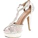 Top Moda Womens Hy5 Formal Evening Party Lace Ankle T-Strap Peep Toe Stiletto High Heel Pumps,White Glitter,9