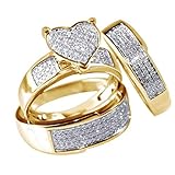 TWO RINGS His Hers Wedding Ring Sets Couples Rings Women's 10k Yellow Gold Filled White CZ Wedding Engagement Ring Bridal Sets & Men's Titanium Wedding Band