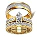 wedding ring set Two Rings His Hers Couples Rings Women's 10k Yellow Gold Filled White CZ Wedding Engagement Ring Bridal Sets & Men's Titanium Wedding Band