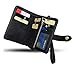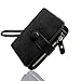 Women's Small Bifold Leather wallet Rfid blocking Ladies Wristlet with Card holder id window Coin Purse (Black)