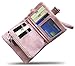 Women's Small Bifold Leather wallet Rfid blocking Ladies Wristlet with Card holder id window Coin Purse (Pink)