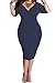 POSESHE Womens Plus Size Deep V Neck Wrap Ruched Waisted Bodycon Dress (XXL, Dark Blue)