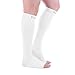 Doc Miller Premium Open Toe Compression Sleeve 1 Pair 20-30mmHg Strong Support Graduated Sock Pressure Sports Running Recovery Shin Splints Varicose Veins (White, Open Toe, X-Large Tall)