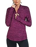 Womens 1/4 Workout Shirts,Cucuchy Long Sleeve Shirt Quarter Zip Pullover Long Sleeve Thumbholes Lightweight Stretchy Polo Apparel Athletic Tops Purple Red Medium