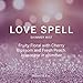 - The Love Spell collection is a playful and alluring scent featuring notes of cherry blossom, peach, and white jasmine.