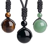 iSTONE Unisex Genuine Round Beads Gemstone Pendant Necklace Black Rope Chain 24 inch for Men Women (B-Beads style 1)