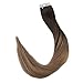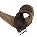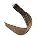 Full Shine 22" Tape in Hair Extensions Remy Human Hair Balayage Ombre Hair Extensions Color #2 Fading to #8 Dip Dyed Ombre Hair Extensions 50g 20 Pcs Per Package