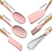 Country Kitchen 6 pc Non Stick Silicone Utensil Baking Set with Rounded Wooden Handles for Cooking and Baking - Pink