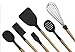 Country Kitchen 6 pc Non Stick Silicone Utensil Baking Set with Rounded Wooden Handles for Cooking and Baking - Black