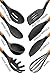 Country Kitchen Silicone Cooking Utensils, 8 Pc Kitchen Utensil Set, Easy to Clean Wooden Kitchen Utensils, Cooking Utensils for Nonstick Cookware, Kitchen Gadgets and Spatula Set - Black