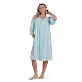 Miss Elaine Robe, Women's Nylon Tricot Short Button Robe, Side Pockets and 3/4 Sleeves (Medium, Seafoam)