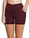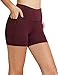 BALEAF Biker Shorts Women with Pockets Workout Gym Spandex Shorts Tummy Control Yoga Running Compression Shorts 5" Wine Red L