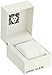 Mineral crystal lens; silver-tone sunray dial with genuine diamond at 12; silver-tone hands and markers