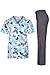 Our Printed Medical Scrub Set Mock Wrap Top and Cargo Pants has it all. The mock wrap top features a tie-back design and two lower pockets, one with a bungee cord. The pants feature a fully elasticated waistband with two slide slash pockets and two cargo pockets. What's more, this set is made with an ultra soft and durable stretch fabric to keep you comfortable all throughout the day.