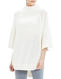 Cable Stitch Women's Rib-Collar Tunic Sweater - Loose Fit Oversized Mock Neck 3/4 Sleeve Pullover Poncho Cover-up Top (Small/Medium, Off-White)