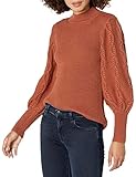 Cable Stitch Women's Cable Sleeve Ribbed Sweater - Mock Neck Long Blouson Lantern Sleeve Pullover Top (Small, Nutmeg)
