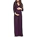 - Wrap maternity maxi dress with ¾ sleeve made of soft, stretchy, yet durable material designed for comfort through all stages of pregnancy.