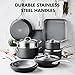 - Cookware Set Includes: 8”, 9.5”, and11” frypans; 2QT and 3QT saucepans with lids; 3QT skillet with lid; 11’’ griddle; 11’’ grill pan; stainless steel steamer; and 5.5QT casserole with lid