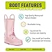 - KID-FRIENDLY WATERPROOF BOOTS | Our waterproof printed rain boots are made with natural rubber, which is durable, flexible, and waterproof. The easy pull on handles allows your kids to get these boots on themselves and promotes independence so you can get going.